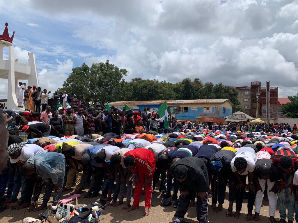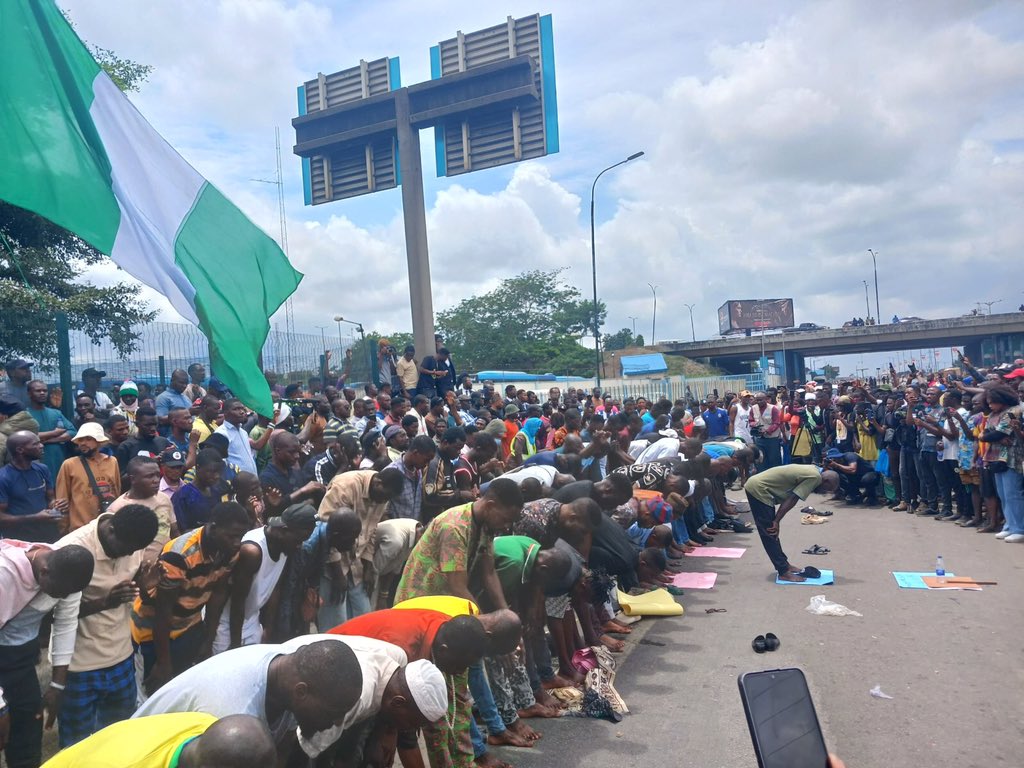 On Friday, August 2, amidst ongoing End Bad Governance protest demonstrations in Lagos State, Muslim protesters momentarily ceased their activities to engage in congregational prayers.