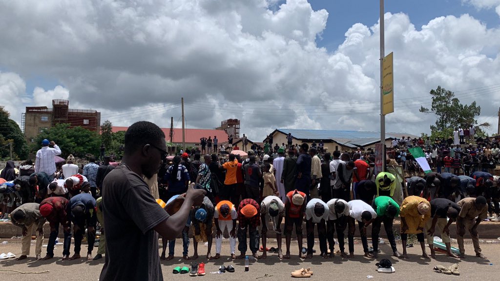 Our correspondent observed that the Muslim demonstrators took a break from the protest to perform prayers, while their Christian counterparts respectfully observed.